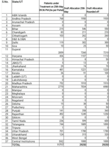 As per Ministry of Chemicals and Fertilizers, the allocation of the drug has been made based on total number of patients.